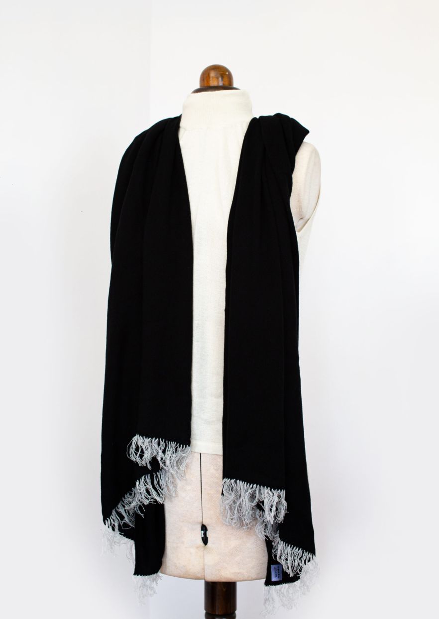 Knitted Cashmere Stole with Tassel – Black
