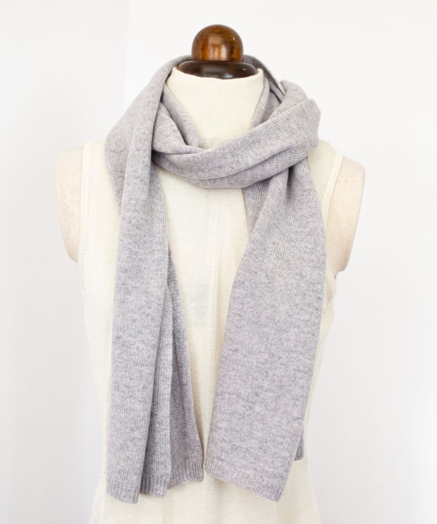 100% Cashmere Scarf, Purl Stitch, Grey