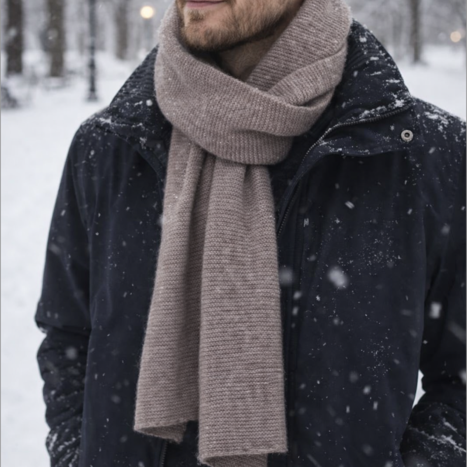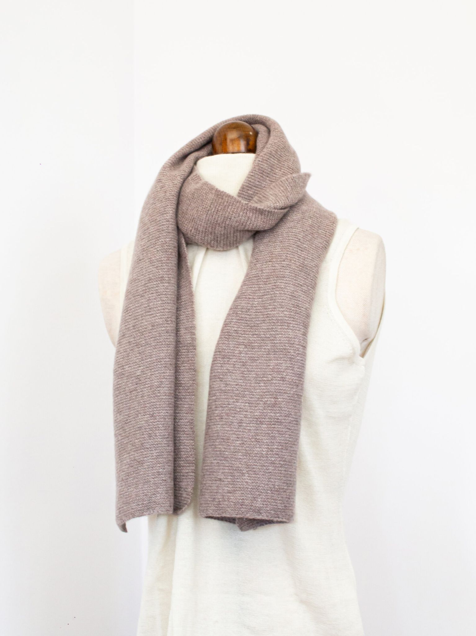 100% Cashmere Scarf, Purl Stitch, Beige