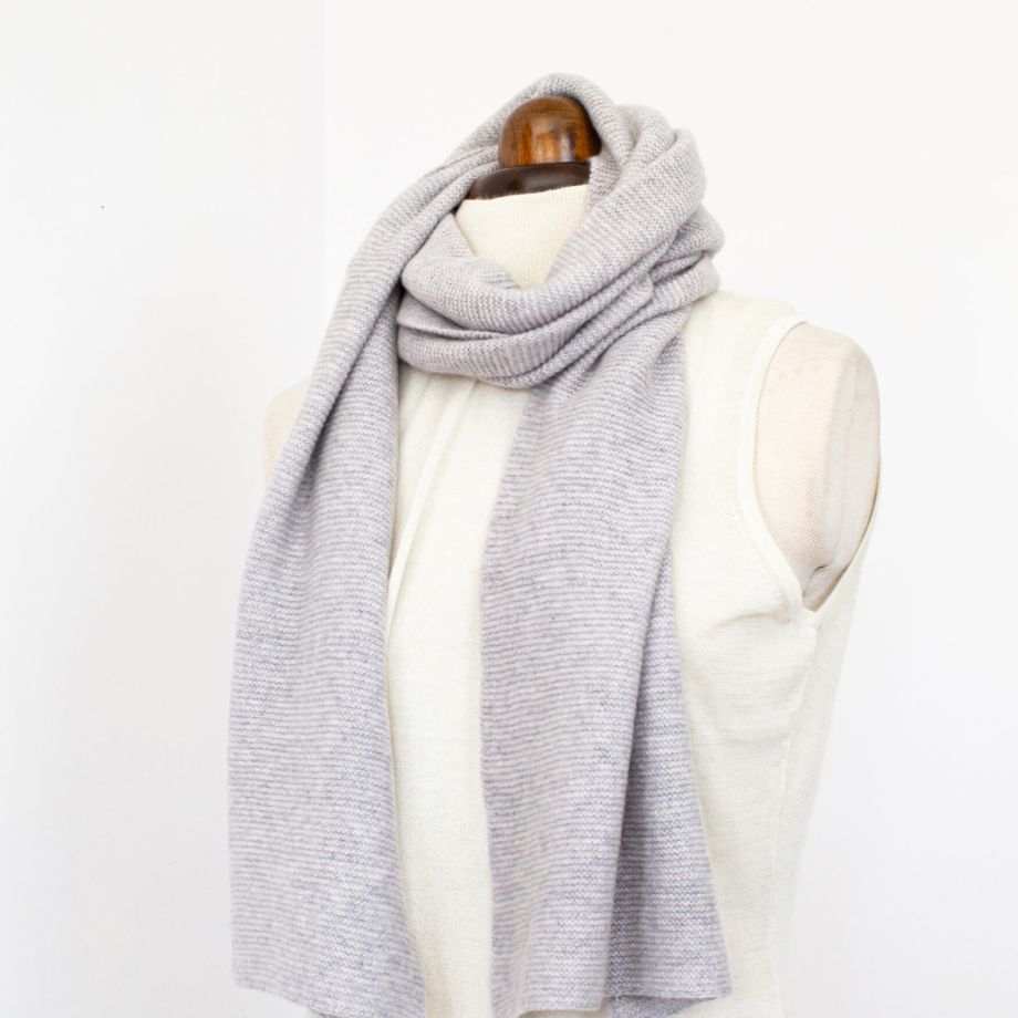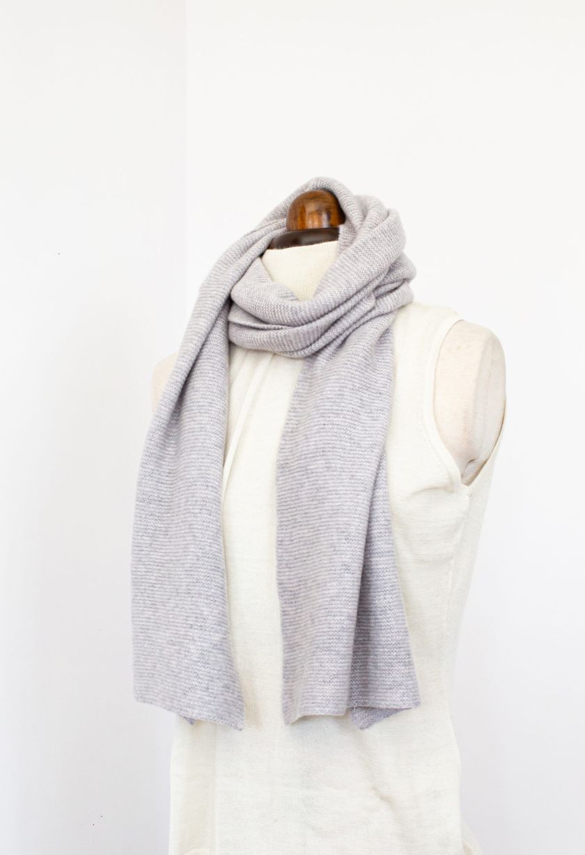 100% Cashmere Scarf, Purl Stitch, Grey