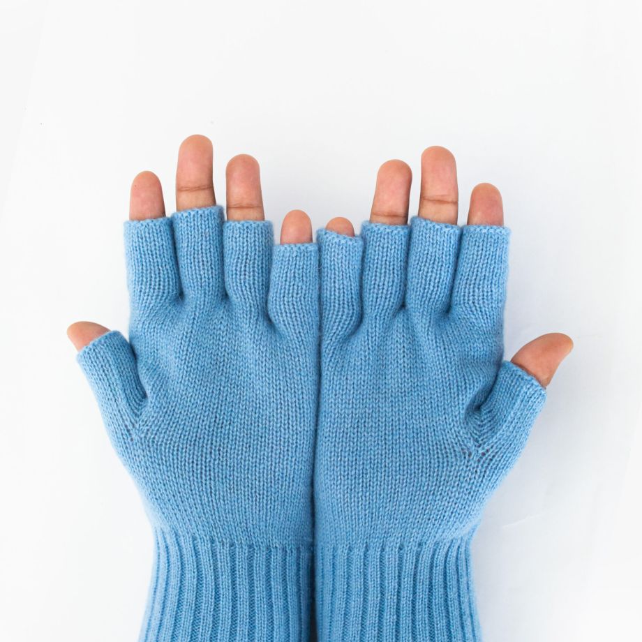 Woollen Gloves, Fingerless, Light Blue