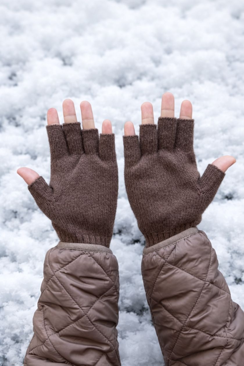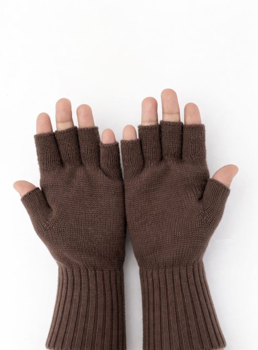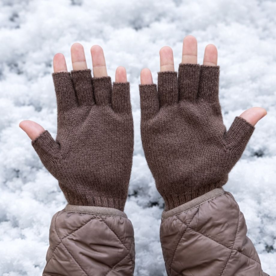 Woollen Gloves, Fingerless, Mocha