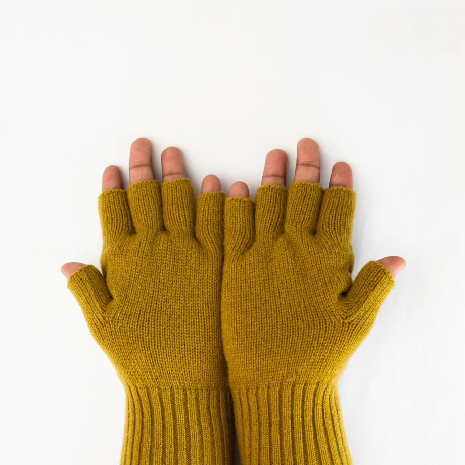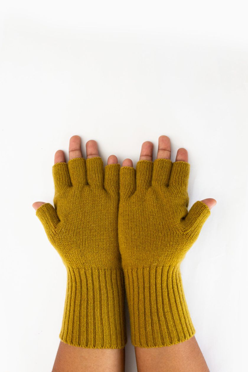 Woollen Gloves, Fingerless, Olive Yellow