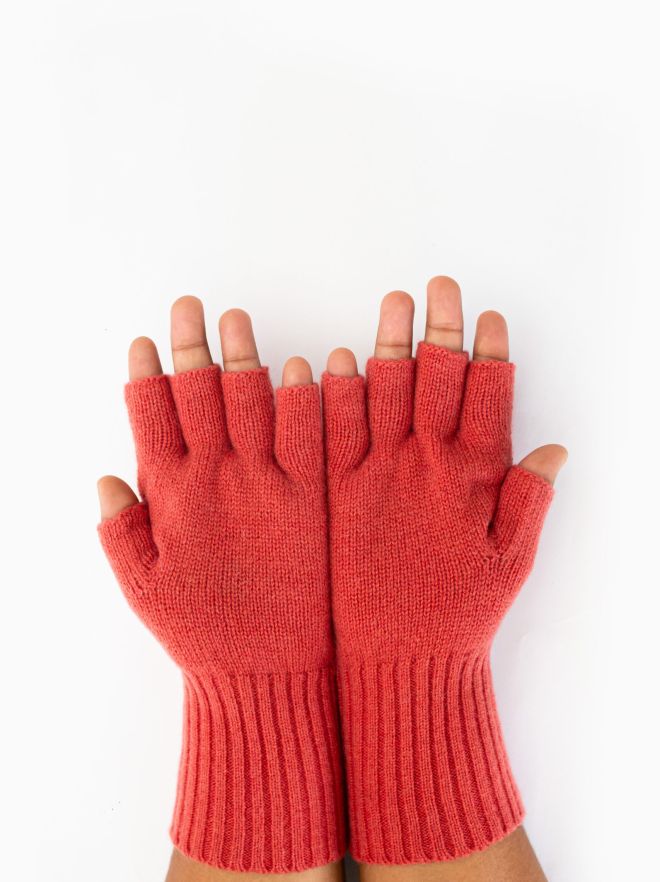 Woollen Gloves, Fingerless, Bright Pink