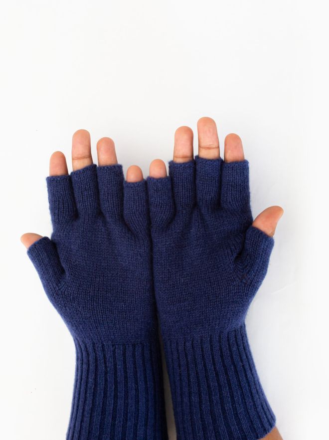 Woollen Gloves, Fingerless, Navy Blue