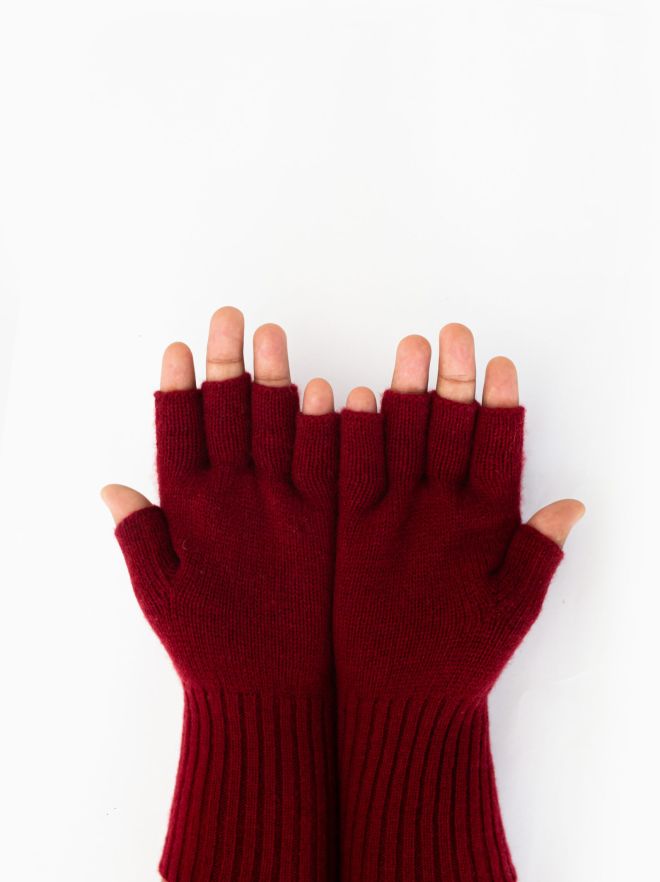 Woollen Gloves, Fingerless, Maroon